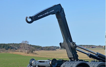 Smidiga arbeten med lastväxlare. Med lastväxlaren så kan vi jobba med olika typer av flak och containrar.